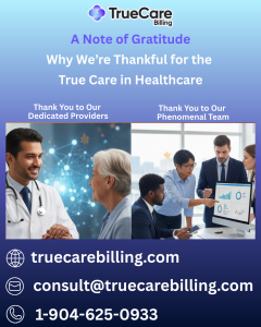 As we approach Thanksgiving, our minds naturally turn to gratitude for family, for health, and for the blessings we often take for granted. Here at True Care Billing, our feelings of thanks are deeply tied to the work we do every day. We are thankful for the mission of healthcare, the dedication of our partners, and the incredible team that makes our promise of “True Care” a reality.